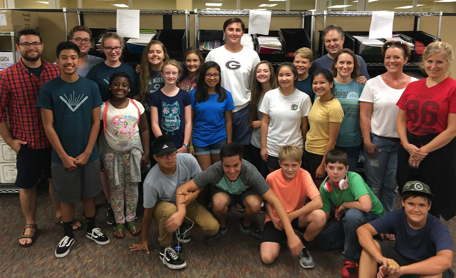 Throughout the summer months, we have had countless volunteer groups serve at New Missions. Their projects have ranged from packing shoeboxes to helping with mailings. Recently, a group of students from Kernan Boulevard Baptist Church in Jacksonville, Florida, came and helped us organize donations, fill water bottles with school supplies, and unpack items for shoeboxes. For the past three summers they have made a trip to Orlando to serve for a full Saturday. It has been a blessing to have students come back each year and willingly serve with joyful hearts.