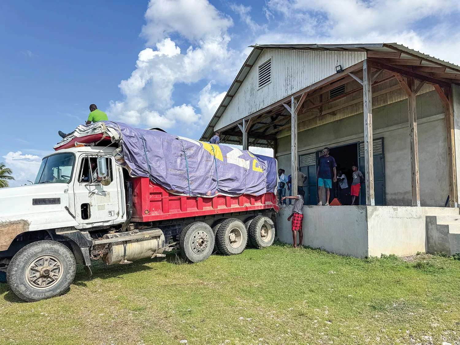 A tractor trailer arrived at our warehouse to deliver food for our schools in Haiti.