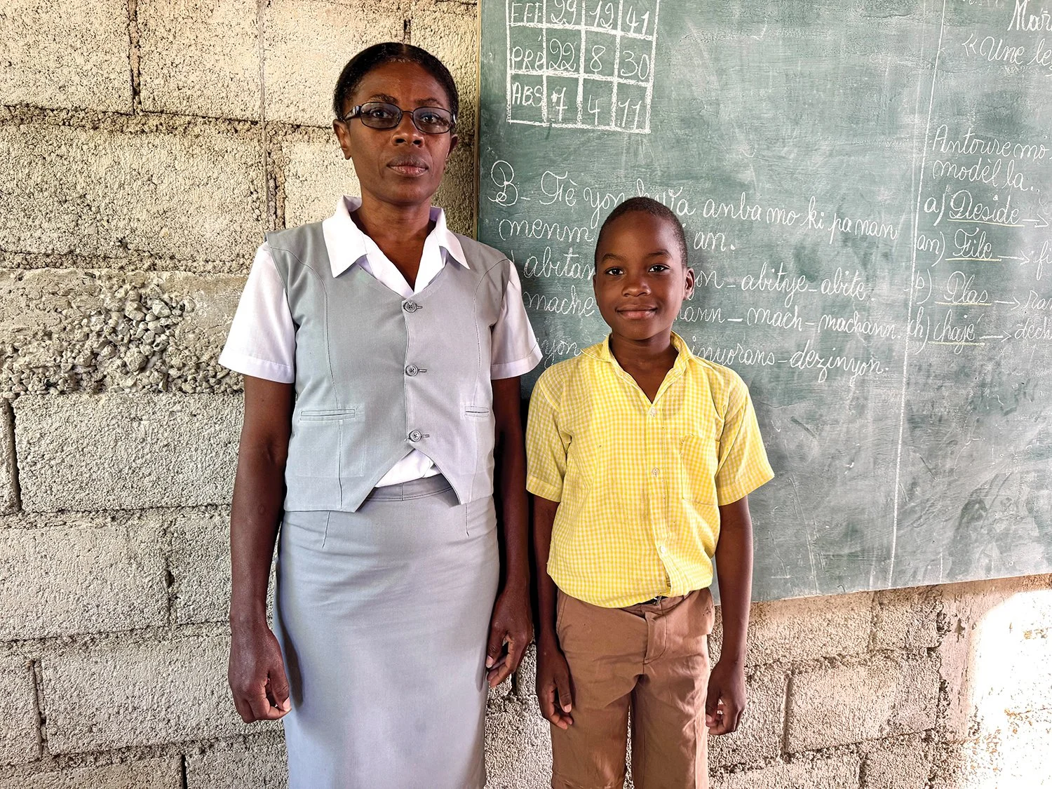 Enite Bazin is our fourth grade teacher in L’Acul, Haiti, and proudly stands with David Jean-Charles.