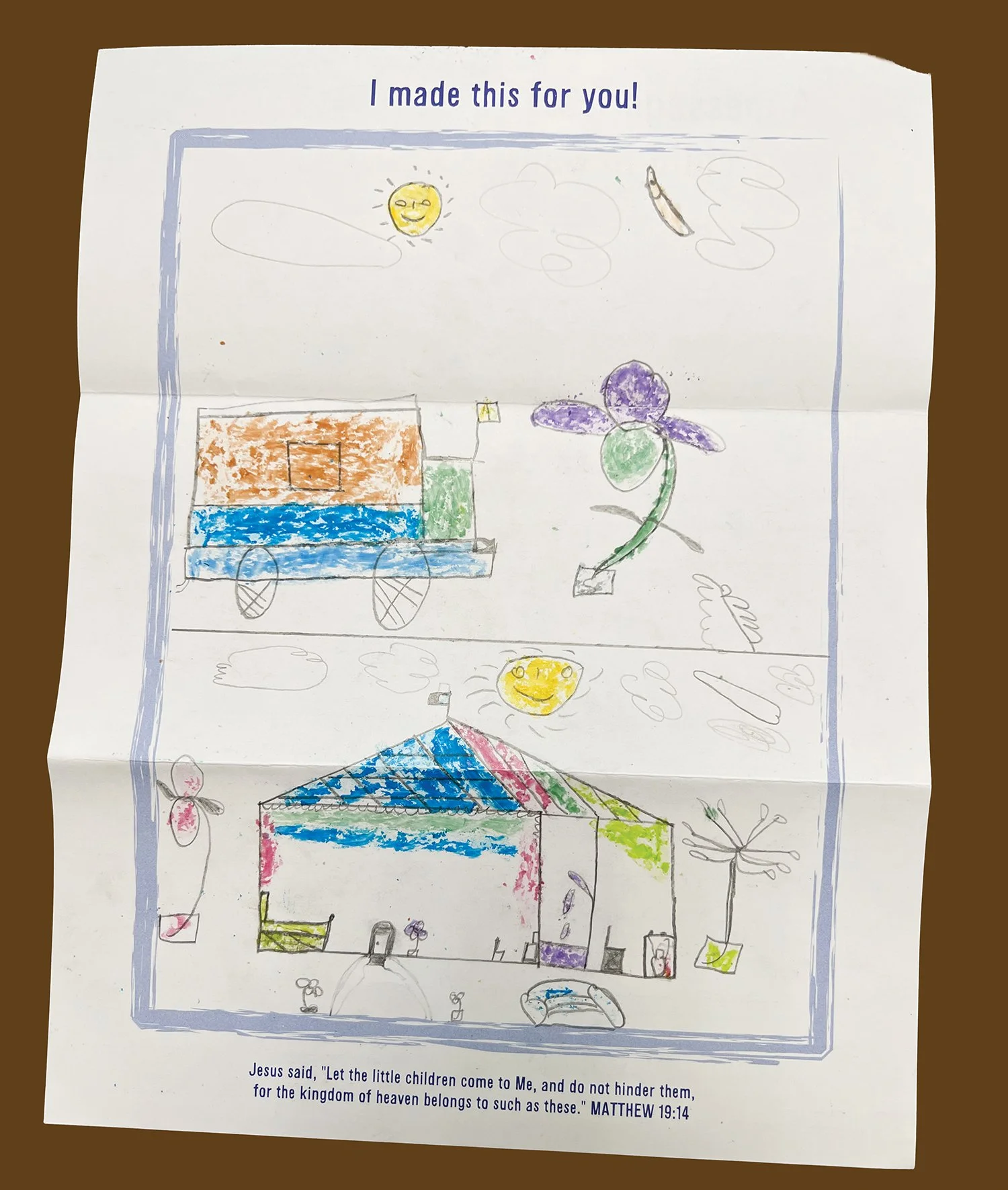 This drawing was made by David Jean-Charles for his sponsors, David and Kathy Walker.