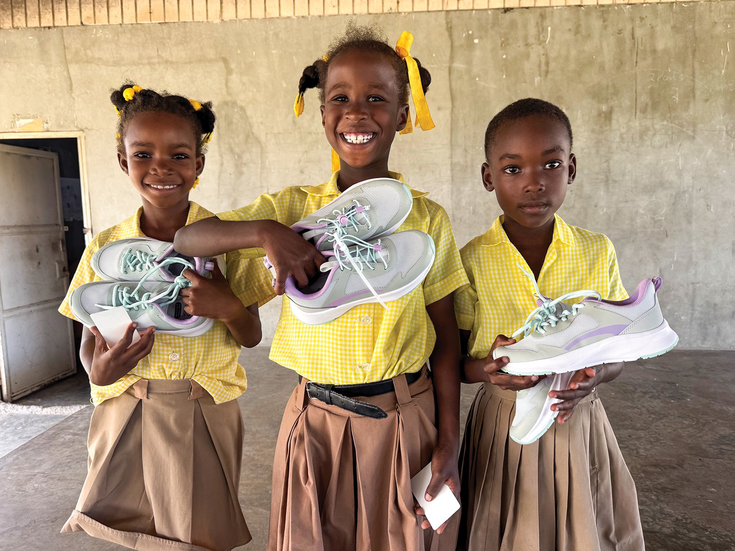 Surprise! We had some sneakers arrive with the shipment of 3,298 shoeboxes for Haiti that brought smiles to many.