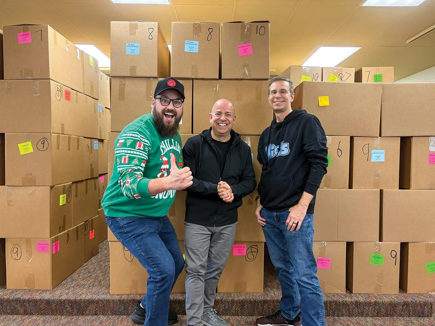 said Pastor Tommy Larison, elementary pastor at CrossLife Church in Oviedo, Florida. Larison and Evangelism Outreach pastor, Jeff Dunson, visited our Orlando office to capture video for their upcoming Vacation Bible School. They walked around the warehouse and saw cases of shoeboxes stacked high ready for shipment to Haiti.